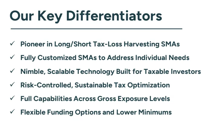Lumida works with institutionally algorithim providers such as AQR and Quantinno to implement these benefits via a separately managed account.